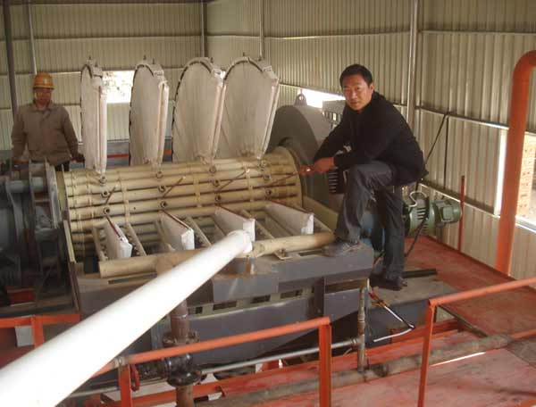 5、精選:將去掉三氧化二鐵的物料送入1024型強(qiáng)磁重選機(jī)進(jìn)行精選,選出鐵、云母物質(zhì),然后將物料送入1018×2型普通磁選機(jī),再次分選;注意:目前利用磁選機(jī)除鉀長(zhǎng)石中的鐵不適合全部鉀長(zhǎng)石礦山,目前浮選工藝已得到廣泛應(yīng)用。